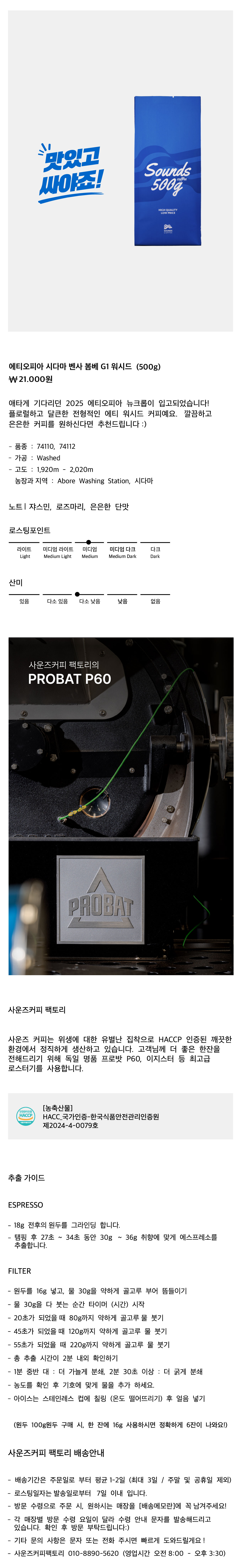 [2025 뉴크롭] 에티오피아 시다마 벤사 봄베 G1 워시드 500g
